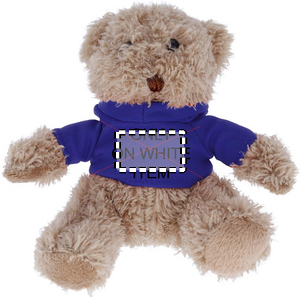 Nallekarhu hupparilla, sublimaatiopainatus vain valkoiseen tuotteeseen.