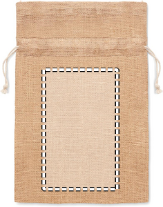 Pieni juuttipussi, koko noin 14 x 22 cm.