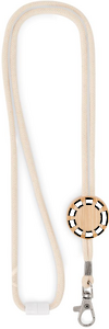 Puuvillakaulanauha jossa on pyöreä bambukiristin, papukaijalukko ja niskassa turvalukko. Pituus 50 cm.