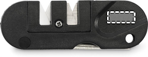 Taskukokoinen ABS-muovista valmistettu veitsen teroitin.