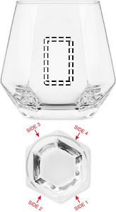 Geometrinen timantin muotoinen kallistettu juomalasi. Viskille tai muille juomille. Tilavuus: 300 ml.