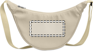 Puolikuun muotoinen yliolan laukku 400D Oxford -kankaasta ja 210D RPET-vuorilla. Yksi vetoketjullinen päätasku ja kaksi sisätaskua.