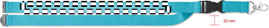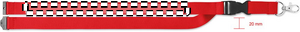 Puuvillakaulanauha, jossa on papukaijalukko, irrotettava pikalukko ja turvalukko, leveys 20 mm.