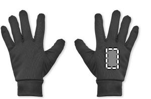 Älypuhelimelle tarkoitetut urheilusormikkaat polyesteriä. Kaksi sormea, joissa on kosketustoiminto ja liukastumista estävät pisteet kämmenessä ja sormessa, PVC:tä.