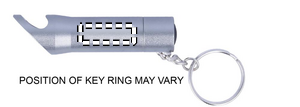 Metallinen LED-taskulamppu avaimenperä, pullonavaajalla. Patterit eivät sisälly toimitukseen.