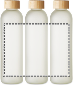 Lasinen juomapullo, jossa on erityinen pinnoite sublimaatiota varten sekä bambukorkki. Tilavuus 650 ml.