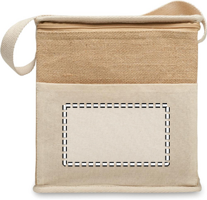 Juuttikylmälaukku, jossa on puuvillainen kantokahva ja etutasku 6x0,5 litran pulloille. Eristysmateriaali: 3 mm:n alumiinifolio. Tilavuus 3 litraa.