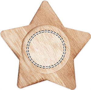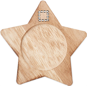 Star shaped wooden decorative base with vanilla fragranced candle.