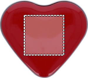 Sydän tinalaatikko, sisältää 24 grammaa sydämenmuotoisia karkkeja.