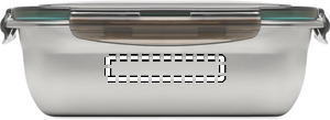 Kierrätetty kierrätetty ruostumattomasta teräksestä valmistettu lounaslaatikko, jossa on PP-kansi ja 4-sivuinen lukko. Sisältää erottimen. Tilavuus: 1500 ml.