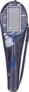Sulkapallosetti kaksi sulkapalloa ja kaksi sulkapallomailaa. Sisältää muovisen kantolaukun hihnalla.