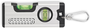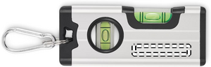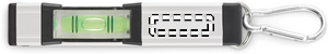 Mini magneettinen vatupassi alumiinikotelossa, jossa on karabiini. Karabiini ei ole tarkoitettu kiipeilyyn (ei-ammattimaiseen käyttöön).