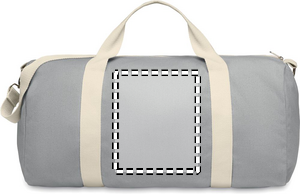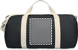 Duffelilaukku kierrätyskankaista (60 % kierrätettyä puuvillaa, 40 % kierrätettyä polyesteriä), 320 gr/m², kantokahvat luonnonpuuvillanauhaa, olkahihna on säädettävä ja irrotettava.