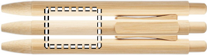Kuulakärkikynä, jossa bambuinen runko, kärki, klipsi ja runko. Sininen muste.
