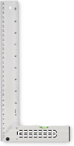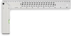 Alumiininen kulmaviivain ja vesivaaka. Viivotin 30 cm.