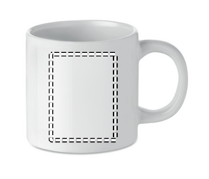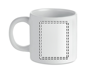 Keraaminen muki 200 ml, erikoispinnoite sublimaatiota varten. Yksittäispakkaus valkoisessa pahvilaatikossa.