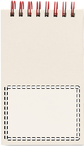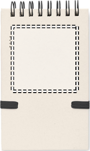A6 kokoinen muistikirja kierrätyskartongista (70% maitopurkeista tehtyä kartonkia ja 30% kierrätyspaperia) Muistikirjassa on 70 tyhjää sivua, kierresidonta, kiinnitys kuminauhalla ja kynäpidike. Settiin kuuluu samanvärinen kuulakärkikynä sinisellä musteella.