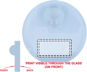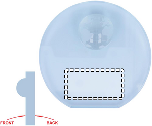 Pyöreä pokaali lasista, yläosassa kohokuviolla oleva maapallon puolikas. Sisältää lahjapakkauksen.