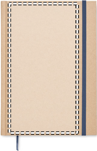 A5 muistikirja jossa kovat, kierrätyskartongista valmistetut kannet. 200 viivoitettua sivua kierrätyspaperista (100 arkkia/80 g/m²). Kuminauha kiinnitys ja kirjanmerkki. Valmistettu EU:ssa.
