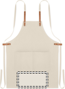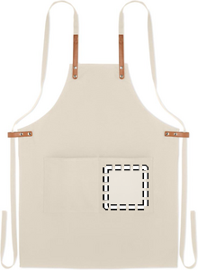 Adjustable kitchen apron with 2 front pockets in 340 gr/m² organic cotton/canvas. The contrasting brown straps give this apron a more premium look and feel. Whether you are a professional chef or an amateur home-cook, having the right equipment in your kitchen is essential. This apron is not only comfortable, durable and sustainable, it is also very useful thanks to the 2 front pockets. Store a recipe note or some small utensils in there for quick access.Produced under a certified standard for the use of harmful substances in textile. Each apron is presented in an individual box. This item is individually packed in Individual box.