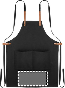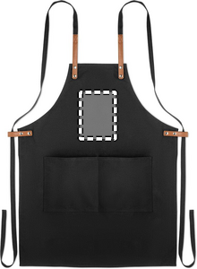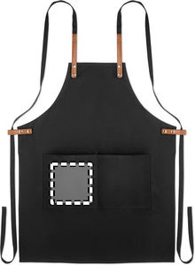 Adjustable kitchen apron with 2 front pockets in 340 gr/m² organic cotton/canvas. The contrasting brown straps give this apron a more premium look and feel. Whether you are a professional chef or an amateur home-cook, having the right equipment in your kitchen is essential. This apron is not only comfortable, durable and sustainable, it is also very useful thanks to the 2 front pockets. Store a recipe note or some small utensils in there for quick access. Produced under a certified standard for the use of harmful substances in textile. Each apron is presented in an individual box. This item is individually packed in Individual box.