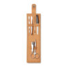 6-osainen ruostumattomasta teräksestä valmistettu manikyyrisetti, suorakulmainen korkkinen säilytystasku. Korkki on luonnonmateriaali, strukturaalinen laatu ja pinnan huokoisuus voi aiheuttaa eroavaisuuksia tuotteissa painatuksen jälkeen