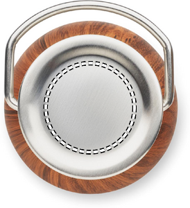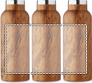 Kaksiseinäinen eristävä tyhjiöpullo kierrätetystä ruostumattomasta teräksestä (90 % kierrätettyä ruostumatonta terästä ja 10 % ruostumatonta terästä). Pullossa puupintaa jäljittelevä pinnoite ja kantokahvainen korkki. Vuotamaton. Tilavuus: 500 ml.
