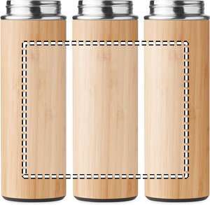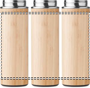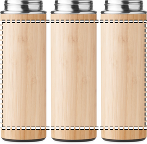 Double wall stainless steel insulating vacuum flask with bamboo outer cover and grip lid in PP. Capacity: 450ml. Keep your drinks cold or hot with this insulated bottle. Whether you love coffee, tea or other warm drinks, with this bottle you can easily bring it with you thanks to grip lid. The bamboo cover gives the bottle a natural look and makes it stand out from other bottles. Leak free. Bamboo is a natural product, there may be slight variations in colour and size per item, which can affect the final decoration outcome. FSC®-certified | FSC 100%, N5.7, FSC-C213206
