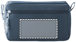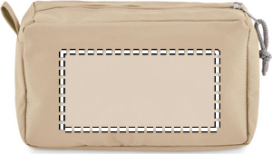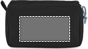600D- polyesterinen kosmetiikkalaukku PPE-taustalla, kahdella vetoketjullisella taskulla.