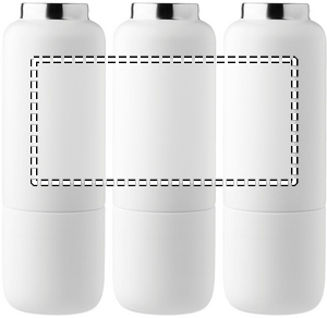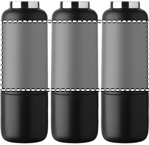 Kaksinkertainen eristetty pullo 90 % kierrätetystä ruostumattomasta teräksestä ja 10 % ruostumattomasta teräksestä, integroitu kahvahihna ja pitkä lisähihna (70 cm) PP-korkista. Vuotamaton. Muki sisältyy pakkaukseen. Tilavuus: 500 ml.