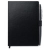 A6-muistikirja kartonki kannella, 72 sivua viivattua paperia, kuminauhalla ja kirjanmerkkinauhalla. Sisältää metallisen kuulakärkikynän sinisellä musteella. FSC MIX CREDIT | P7.1 | FSC-C213206