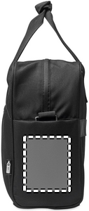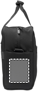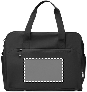Käsimatkatavaralaukku 600D RPET:stä, jossa on suuri vetoketjullinen etutasku, kaksi pientä sivutaskua. Sisältää 15 tuuman kannettavan tietokoneen lokeron. Pehmustettu irrotettava ja säädettävä olkahihna. Trolleypidike kääntöpuolella.