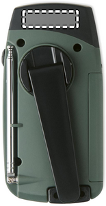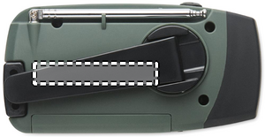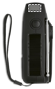 Kannettava AM/FM-radio ABS-muovista, LED-taskulampulla (2 asetusta) ja 1200 mAh:n varavirtalähteellä hätälatausta varten. Virtalähteenä aurinkokenno ja käsikamme.