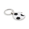 Jalkapallon muotoinen pullonavaaja-avaimenperä sinkkiseoksesta, jossa on rautarengas.