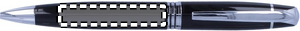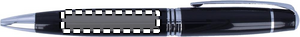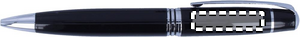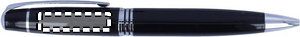 Metallinen kuulakärkikynä mustalla musteella ja kääntömekanismilla, pakattuna alumiiniseen lahjakoteloon.