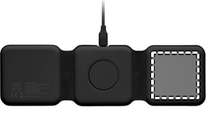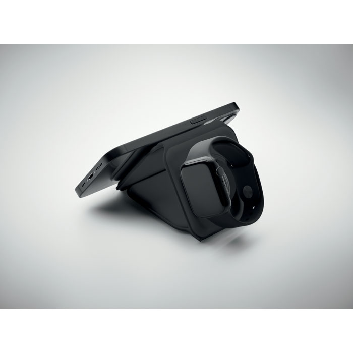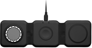 3 in 1 kokoontaitettava latausasema ABS-materiaalista. 3 langatonta latauspaikkaa. Tulo: 2-in-1 Type-C ja Type-A.