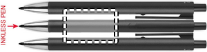 Kierrätysalumiinista valmistettu kynäsarja, jossa on 1 kuulakärkikynä ja 1 grafiittikynä. Sininen muste. Kierrätyspaperirasiassa.
