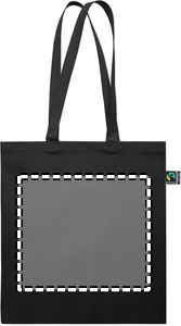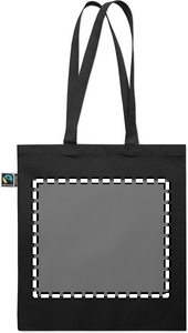 Reilun kaupan puuvillasta valmistettu ostoskassi, jossa on pitkät kahvat. 180 gr/m².