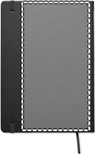 A5-muistikirja kovalla PU-kannella. 200 viivoitettua sivua (100 arkkia) kierrätyspaperia (80 g/m²). Kiinnitys kuminauhalla ja kirjanmerkki. Valmistettu EU:ssa.