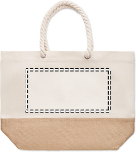Ranta- tai ostoskassi, jossa on narukahva ja juuttiyksityiskohdat. Materiaali 280 gr/m²canvas.