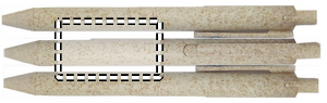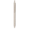 Kuulakärkikynä sinisellä musteella, tuote on valmistettu 50% vehnän oljesta ja 50% ABS.