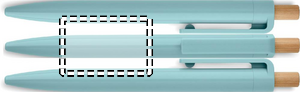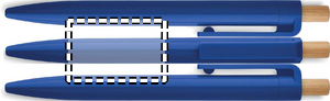 Kierrätetystä ABS-muovista valmistettu kuulakärkikynä, jossa on bambusta valmistettu painike. Sininen muste.