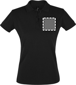 SOL'S PERFECT naisten poolopaita, 1x1 joustinneule kaulus ja hihansuut, vahvistettu kaulasauma, 2 sävyyn sopivaa helmipnappia. Moderni istuvuus sivusaumalla, varanappi sisäpuolella. Kankaan yksityiskohdat: 180g / m² 100% kammattua kehrättyä puuvillaa. OEKO-TEX®. Myydään vain painettuna