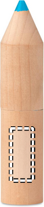 6 puukynää lyijykynän muotoisessa puulaatikossa.