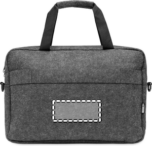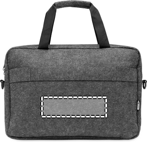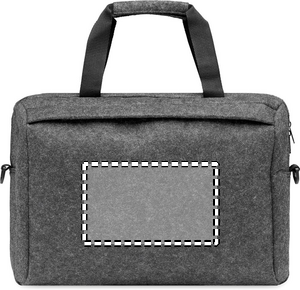 15 tuuman kannettava tietokonelaukku RPET-huovasta, jossa on yksi sisäinen päälokero ja yksi vetoketjullinen etutasku. Sisältää irrotettavan ja säädettävän olkahihnan. Trolleypidike kääntöpuolella.