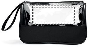 Toilettilaukku mikrokuitua ja PVC- muovia, sisältää ranne hihnan. Ftalaatti vapaa.