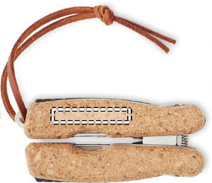 Ruostumattomasta teräksestä valmistettu monikäyttöinen taskuveitsi, jossa on korkkisuojus ja PU-nauha. Sisältää: pihdit, 2 avaajaa, ruuvimeisseli Philipsin terillä, sahanterät, veitsi, viila ja ruuvimeisseli litteällä terällä.