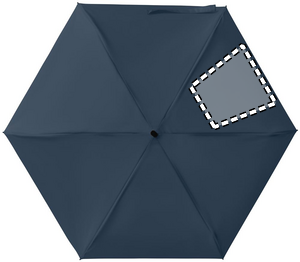 19” manuaalisateenvarjo, valmistettu 190T pongeesta ja mukana säilytyspussi. Tuulenpitävä runko metallia ja lasikuitua, musta kumipintainen kahva rannelenkillä. Kompakti, taitettuna 17 cm.