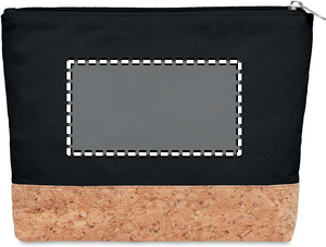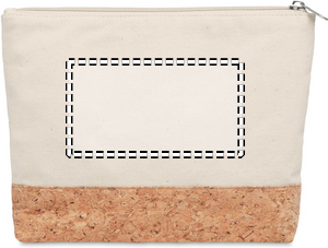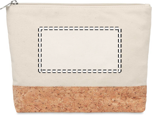 220 g/m² puuvilla kosmetiikkalaukku korkki yksityiskohdalla ja vetoketjulla. Korkki on luonnonmateriaali, strukturaalinen laatu ja pinnan huokoisuus voi aiheuttaa eroavaisuuksia tuotteissa painatuksen jälkeen. Valmistettu sertifioidun standardin mukaisesti haitallisten aineiden käytölle tekstiileissä.