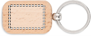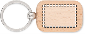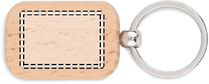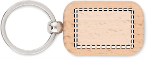Suorakaiteen muotoinen avainperä puusta ja metallisella avainlenkillä.